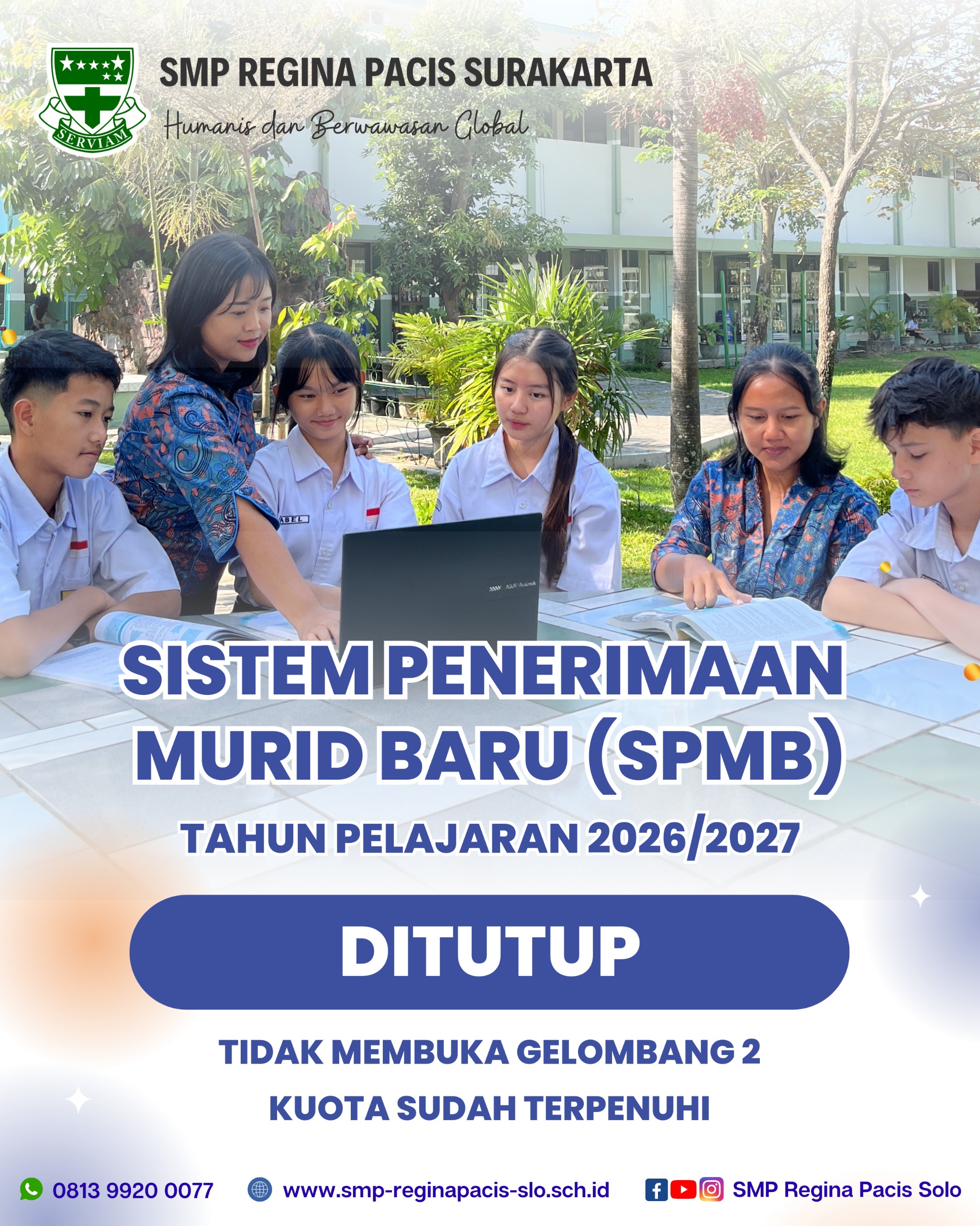 Pengumuman Hasil Seleksi Penerimaan Murid Baru (SPMB) SMP Regina Pacis Surakarta Tahun Pelajaran 2026/2027